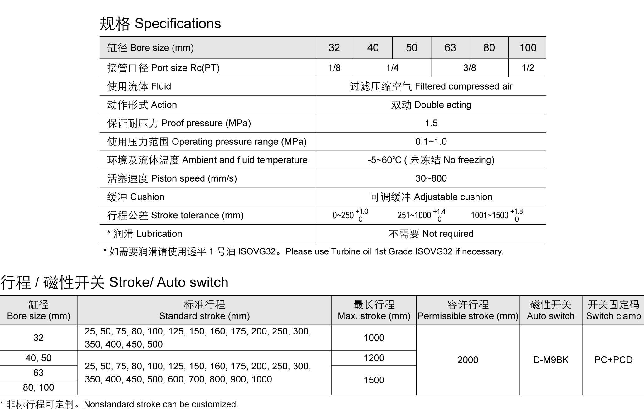 标准气缸 SC (∅32~∅100)