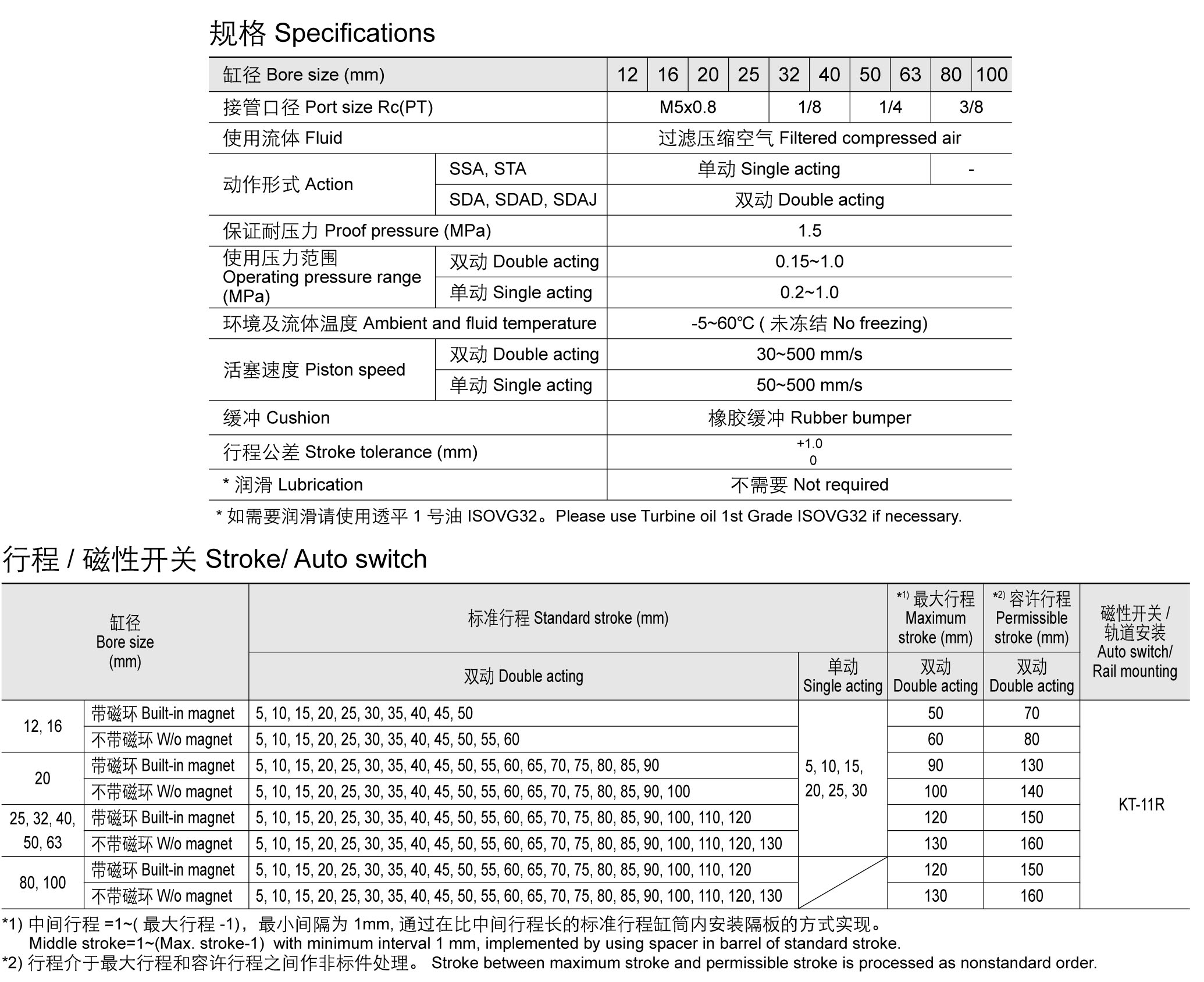 薄型气缸 SDA (∅12~∅100)