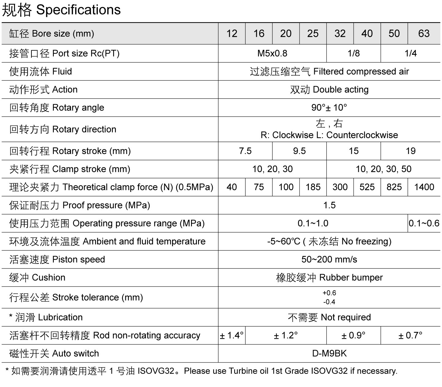 回转夹紧气缸 KMK (∅12~∅63)