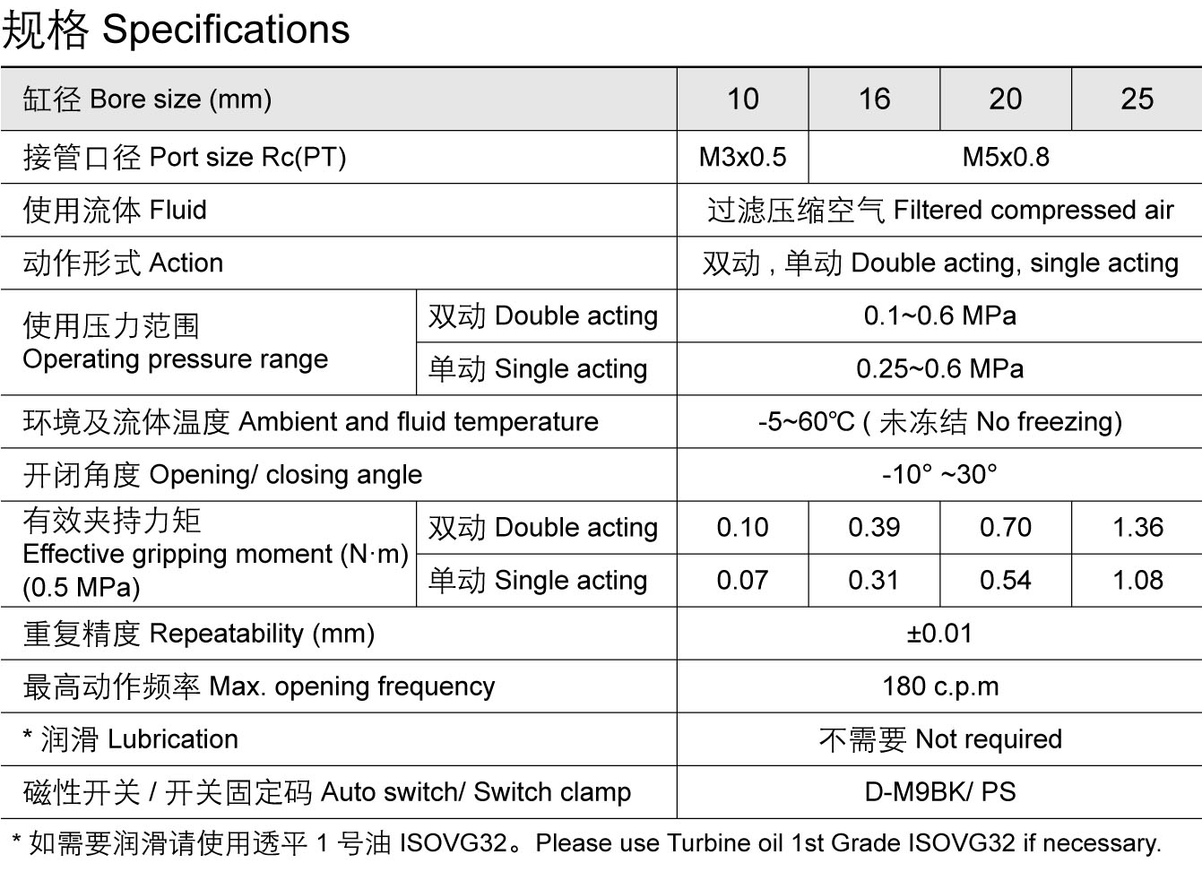 角度开闭气爪 KMHC2 (∅6~∅32)