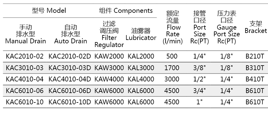 二联件 (过滤器带调压阀+油雾器) KAC2010~6010