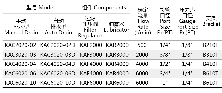 空气过滤器+调压阀 KAC2020~6020