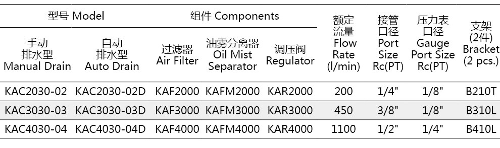 空气过滤器+油雾分离器+调压阀 KAC2030~4030