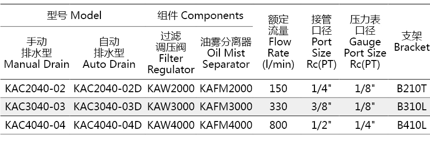 过滤器带调压阀+油雾分离器 KAC2040~4040